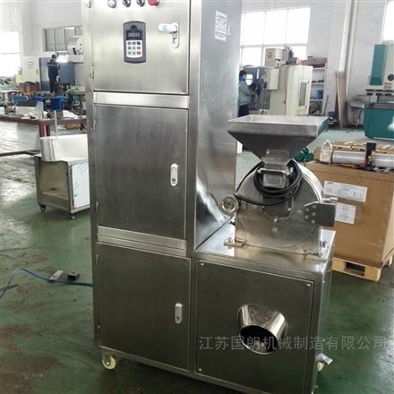 該器主要由主軸、活動力盤、固定力盤、篩網等部件組成。運轉時,電器帶動主軸及動力盤高速旋轉。物料經高速旋轉的刀剪切及高速旋轉的活動力盤和固定力盤剪切獲得粉碎,同時還可根據物料的特性來選擇不同的力具,成物块状的大小可通過更換網篩來獲得。特有的冷卻裝置能有效地降低軸承經高速運轉產生的溫升,從而延長了軸承的使用壽命;同時在風器吸風及水泠的共同作用下,也降低了粉碎室的溫度。