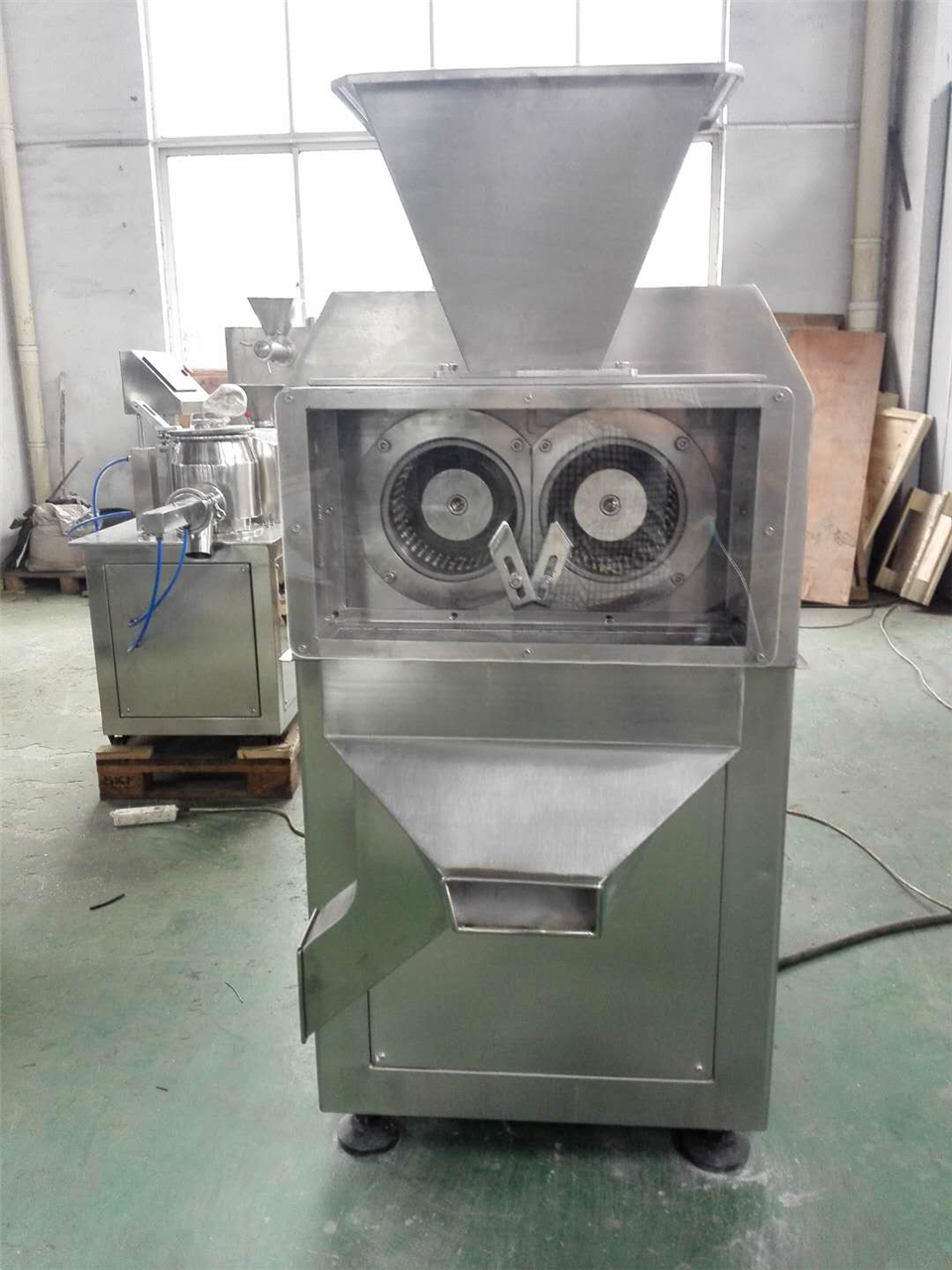 齒壓製粒器一、工作原理: 對齒造粒器用於製藥、食物、衝劑、化工、農藥、固體飲料等行業,將攪拌好的物料製成所需块状,特別適用對粘性較高的物料。本器凡與物料接觸部份均采用不鏽鋼製造,外形美觀,結構合理,製粒成型率高,块状美觀,自動出料,避免人工出料造成的块状破損,並適合流水作業。